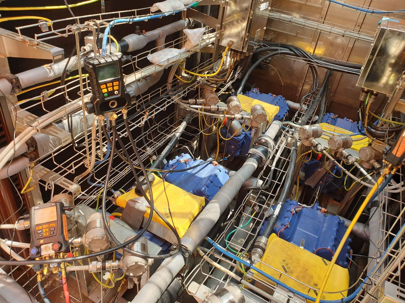 E-House HVAC commissioning at Samsung Heavy Industries Geoje, extended to Malaysia offshore with our own commissioning engineers — owner and class inspection cleared end-to-end.